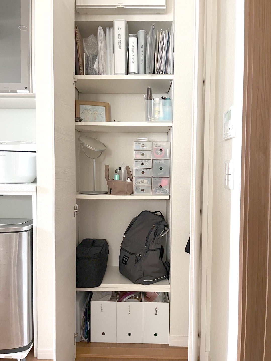 床に置きっぱなし、すごいイヤっ! 無印良品 で「家族のバッグ放置」撲滅宣言!わかりやすい収納やってみたヨムーノ。