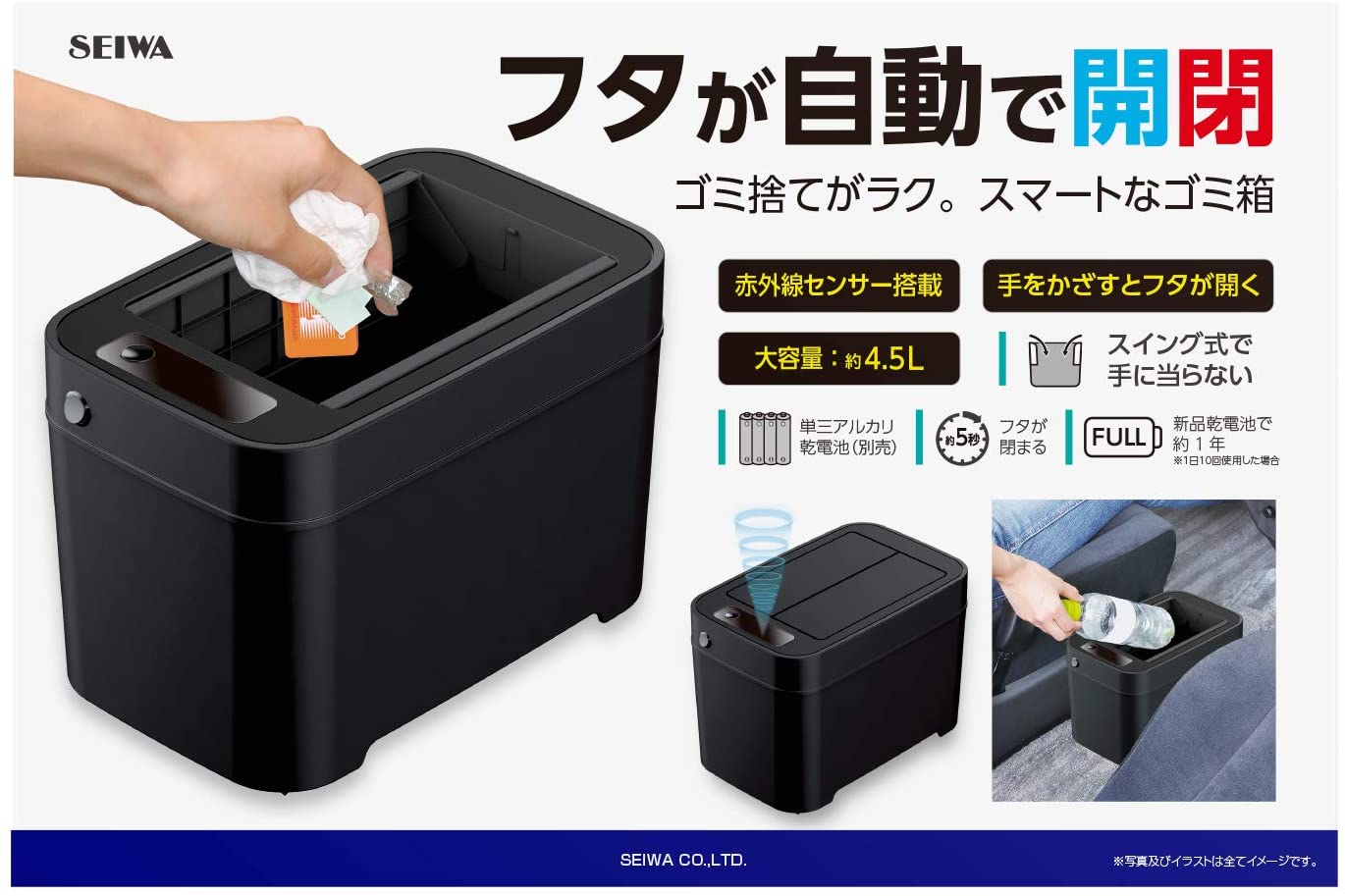セイワ スマートダストボックス WA69ゴミ箱 車用 ダストボックス SEIWA 車 センサー 自動開閉 フタ付き ふた付き 車内 ごみ箱ダストBOX ブラック 黒 車載 車載用 大容量 LED ペットボトル オシャレ 人気 おしゃれ-カー用品スマホ用品の専門店 WAOショップ公式店。