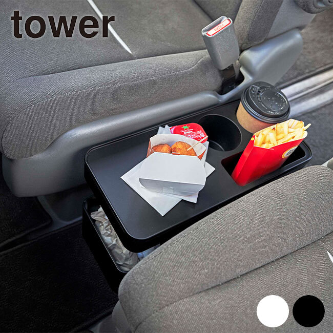 tower タワー 車載用コンソールゴミ箱 車 ゴミ箱 おしゃれ コンパクト 車用 コンソールボックス コンソール ボックス 車内 テーブル 後部座席ドリンクホルダー 収納 後部 座席 収納ボックス ローテーブル 白 山崎実業 6135 6136。