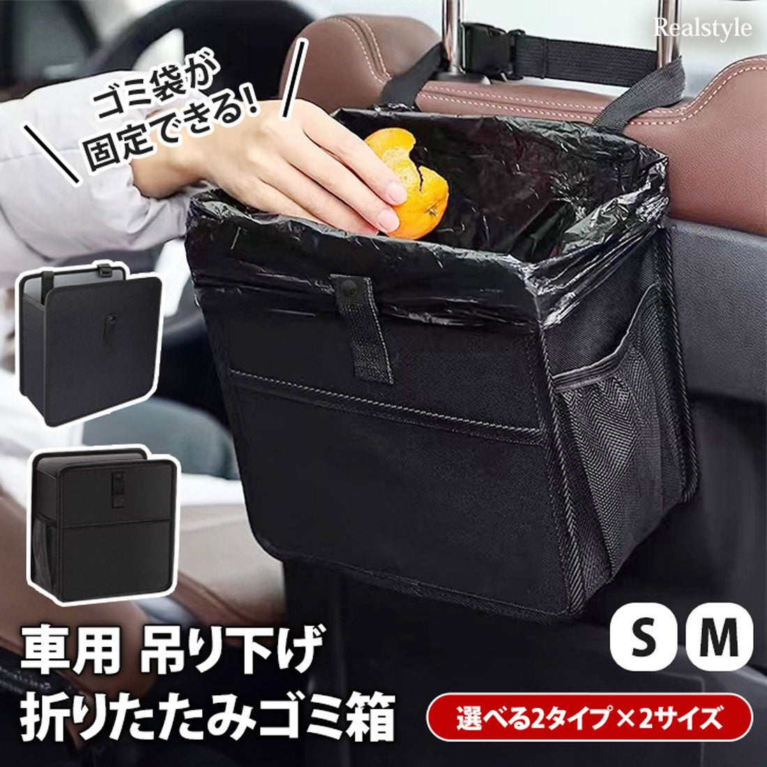 リアルスタイル REAL STYLE 車用 ゴミ箱 ダストボックス シートバックポケット おしゃれ 折りたたみ 倒れない 収納 吊り下げ 車載 スマホドリンクホルダー カー用品ポケットあり- ファッション通販 MAGASEEK マガシーク。