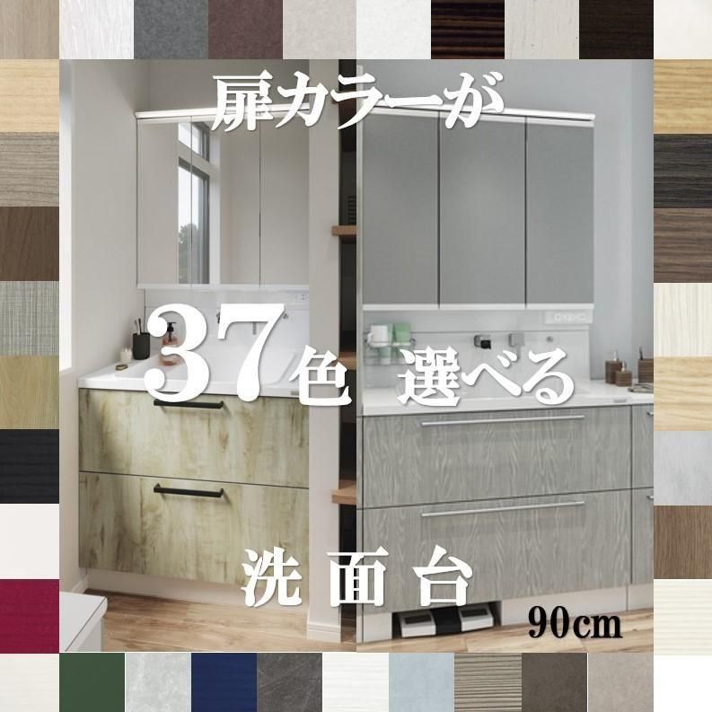 洗面化粧台 900 三面鏡 全引出収納収納 扉カラーが37色選べる洗面台。