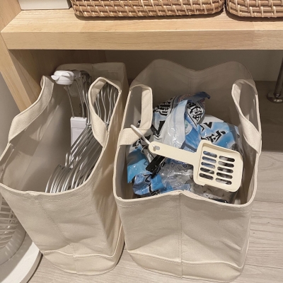 ネコの住まいづくり」無印良品、持ち手付帆布長方形バスケットで猫トイレ砂収納!笑顔あふれる住まいづくり 伊藤 美佳代 整理収納 ・照明アドバイザー 住宅収納スペシャリスト。
