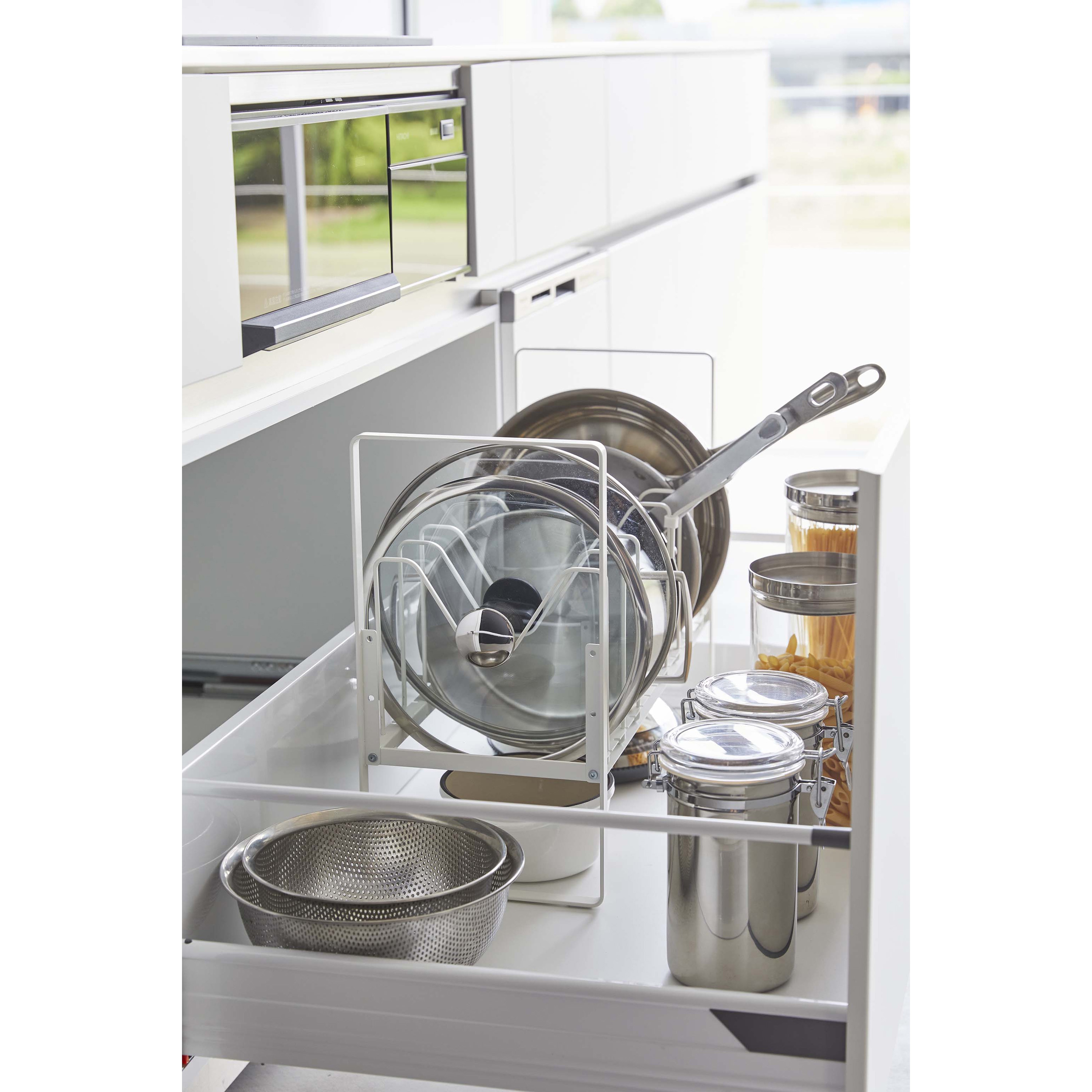 5593 シンク下高さ調整鍋蓋&フライパン収納ラック 2段 タワー 山崎実業 ホワイト色 -通販モノタロウ。