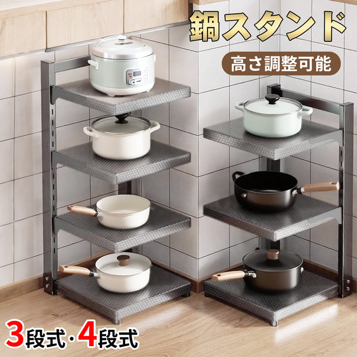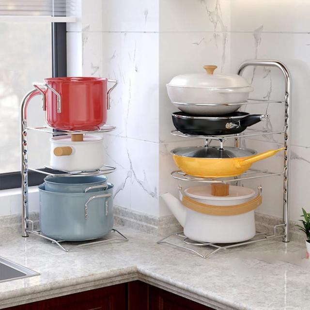 鍋スタンド 鍋置き 3層 高さ調整可能 フライパン収納 キッチンフック スペースの有効活用 多機能キッチン収納ラック コーナーラック 食器棚収納フライパンスタンド キッチンポットラック キッチン用鍋・フライパン棚 多機能 省スペース 耐久性。