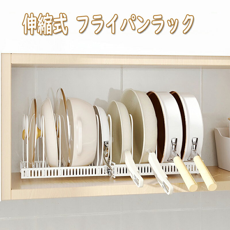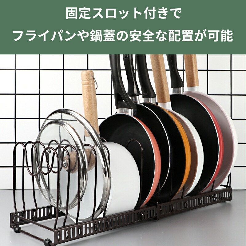 フライパンラック 伸縮式 鍋収納ラック 多機能ラック 10本サポートフレーム付き キッチン。