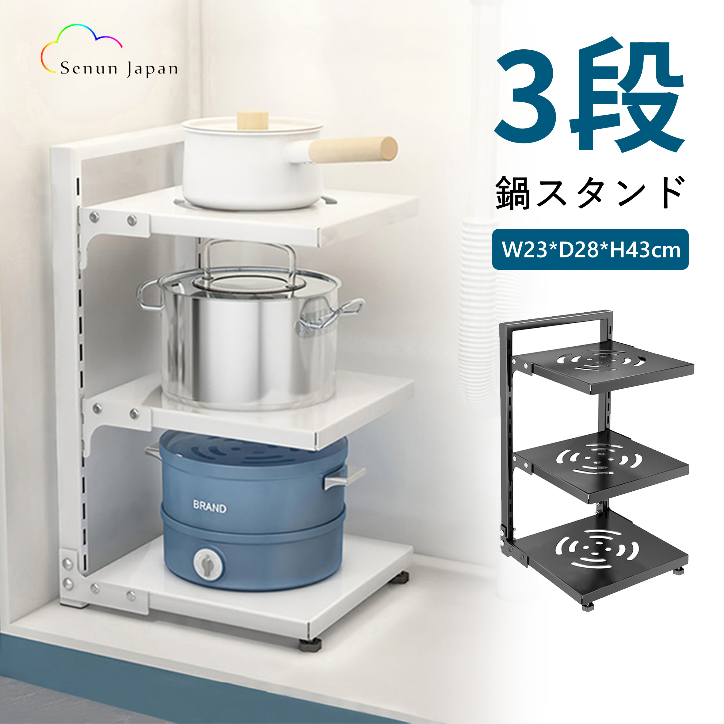 Qoo10キッチン収納ラック 鍋収納棚 選べる2色。