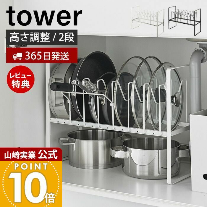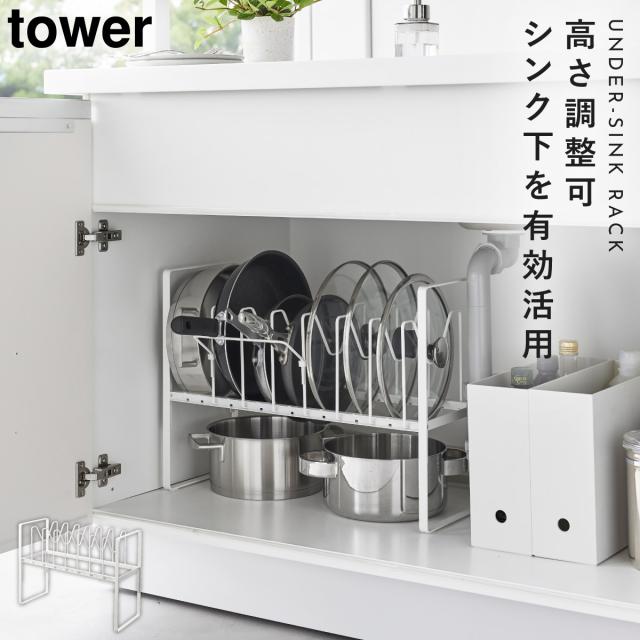 山崎実業 シンク下高さ調整鍋蓋&フライパン収納ラック 2段 タワー towerキッチン雑貨・タワーシリーズモノギャラリ。