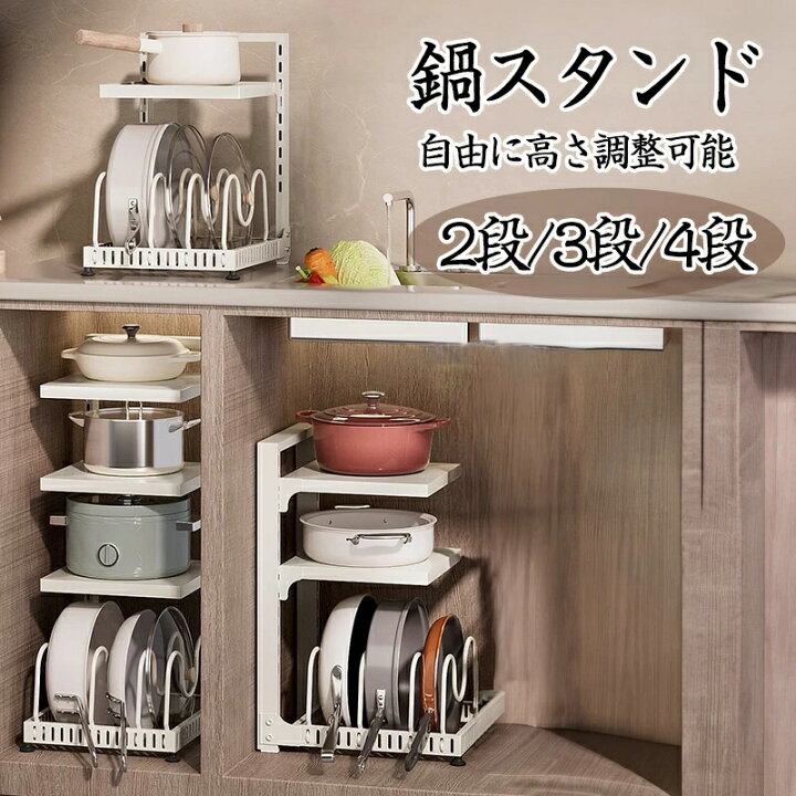 収納棚 鍋 鍋スタンド 鍋置き 2段 鍋収納 3段 省スペース デッドスペース 収納 キッチンツール 収納ラック 収納スタンド フック おしゃれシンプル キッチン収納 雑貨 ホワイト lj4266 - メルカリ。