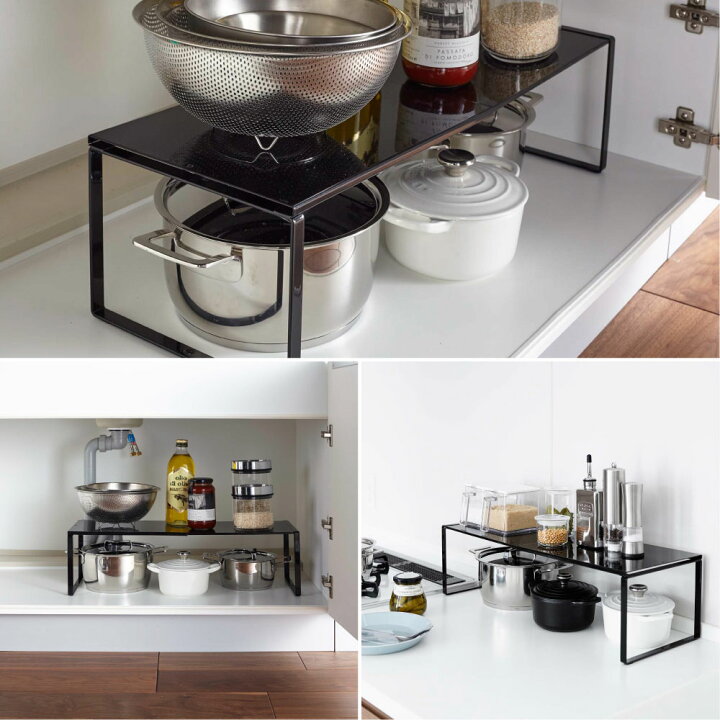 シンク下 キッチンラック キッチン 収納 3段 2段 フライパンラック 鍋ラック 新生活 山崎実業 キッチンラック 収納ラック 収納棚 鍋スタンド 収納スタンドフライパン 2段 シンク 引っ掛け シンク上 コンロ下 棚 隙間 土鍋 シンプル おしゃれ モノトーン ラック キッチン。