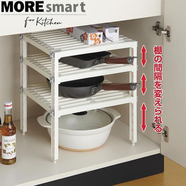 鍋収納ラック 調理器具収納サポート 調節可能な調理器具スタンド 家庭用 3層 キッチンラック どこでもサポートシェルフ 1段伸縮 ステンレス日本製 燕三条 調味料ラック コンロラック 卓上ラック 収納ラック キッチン収納 シンク上 小物 キッチン 収納 収納棚。