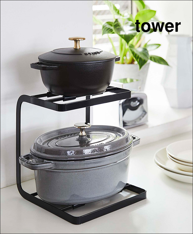 鍋 収納 鍋スタンド2段 tower タワー 山崎実業 キッチン 収納ラック 収納スタンド 鍋スタンド 鍋置き シンク下 食器棚 見せる収納 おしゃれ☆ALL SITESGulliver Online Shopping。