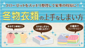 クローゼットをスッキリ整理して家事の時短に! 冬物衣類の上手なしまい方くらしにプラスエステー株式会社。