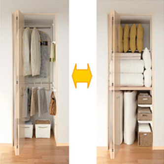 収納上手は衣替え上手。見渡しやすく仕舞いやすい収納で1年中すっきり富山県小矢部市・砺波市のリフォームなら山ワ建設工業パナソニックリフォームクラブ。
