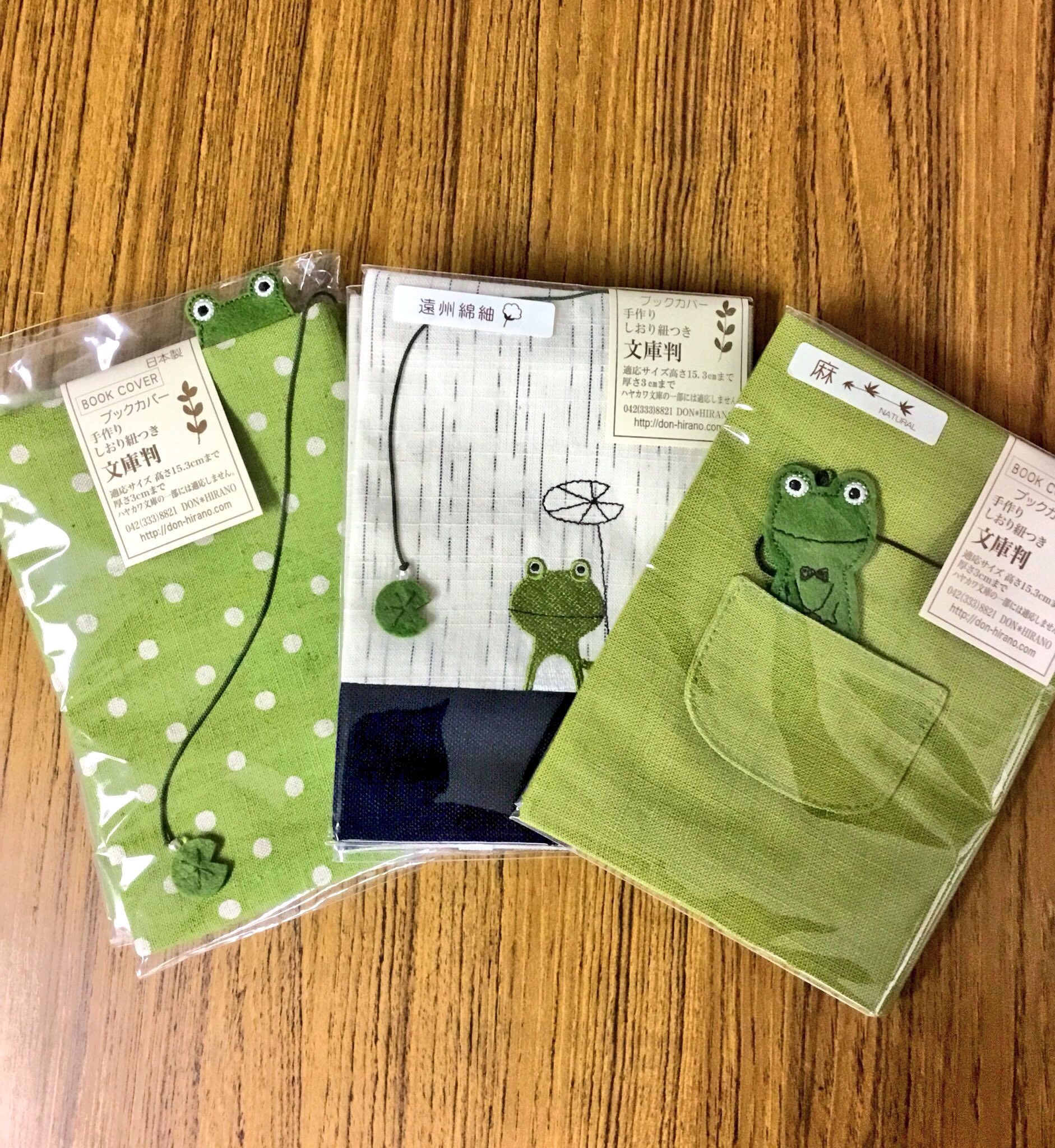 林隆 on X: "東京駅の三省堂書店で見つけた 株 ドン・ヒラノのブックカバーと布しおり「雨がえる」。素材は遠州綿紬。カエルは刺繍されている。デザインがかわいいし、肌触りもいい。汚れることが気になって外には持って行けそうにないのが残念なところ。https:t.co。