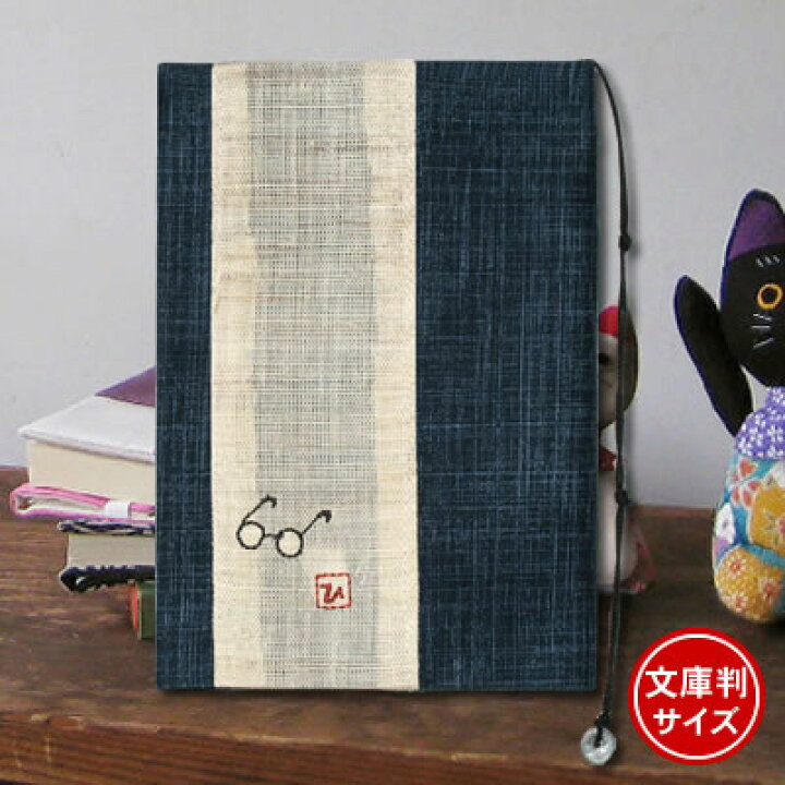ネコポス可能 ドン・ヒラノ ブックカバー めがね 文庫判 DB ダークブルー 30137-DB 手帳カバービジネスサプライセンタ。