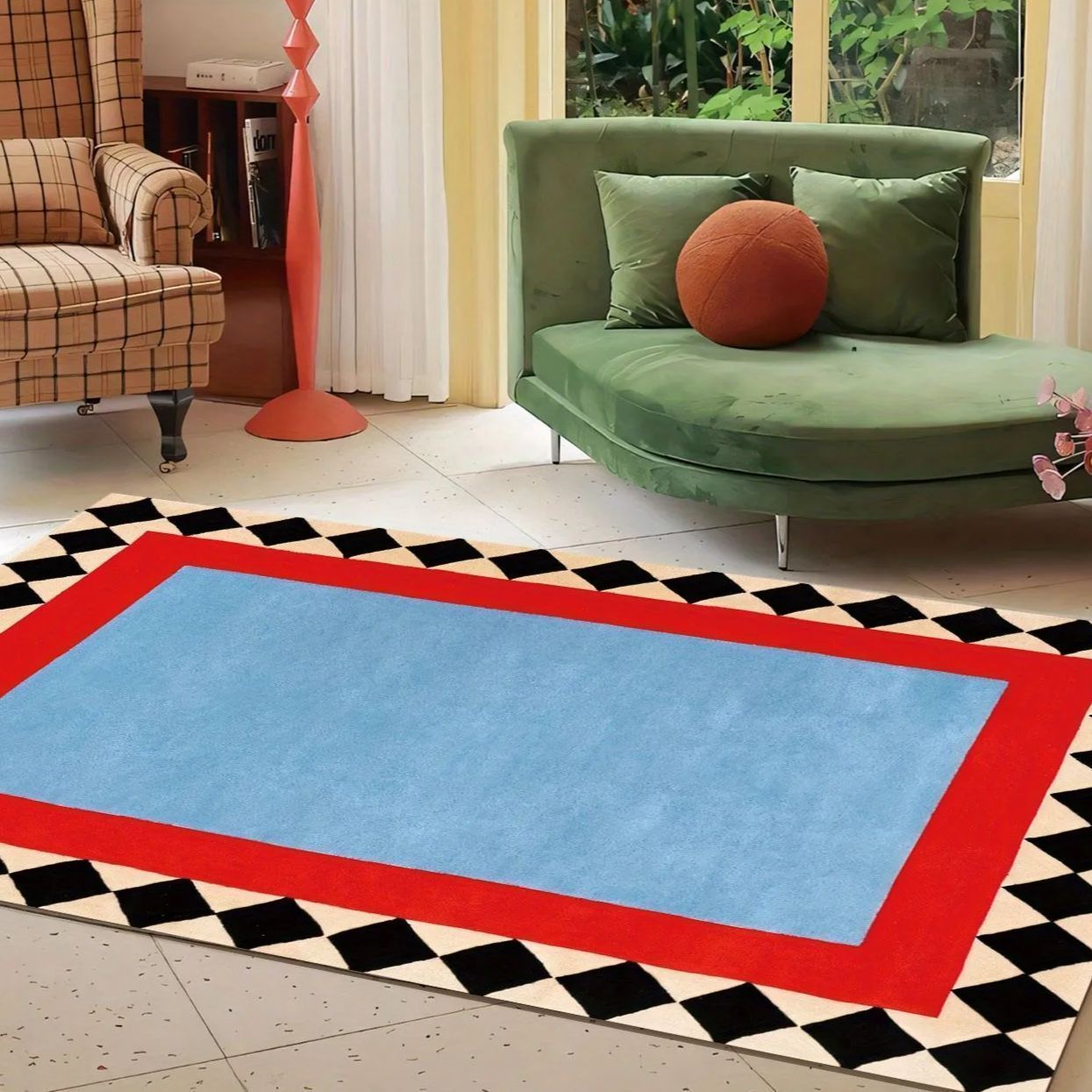 カーペット ラグ モダン 北欧 おしゃれ エリアラグ 滑り止め付き 洗濯機で洗える 家庭 商業 ポリエステルファイバー おしゃれ 寝室 メンズライク子供部屋 男の子の部屋 シック カラフル 80×120cm ブラック レッド ブルー ラグ&カーテン専門店 ラグリー - 洗濯機で洗える。