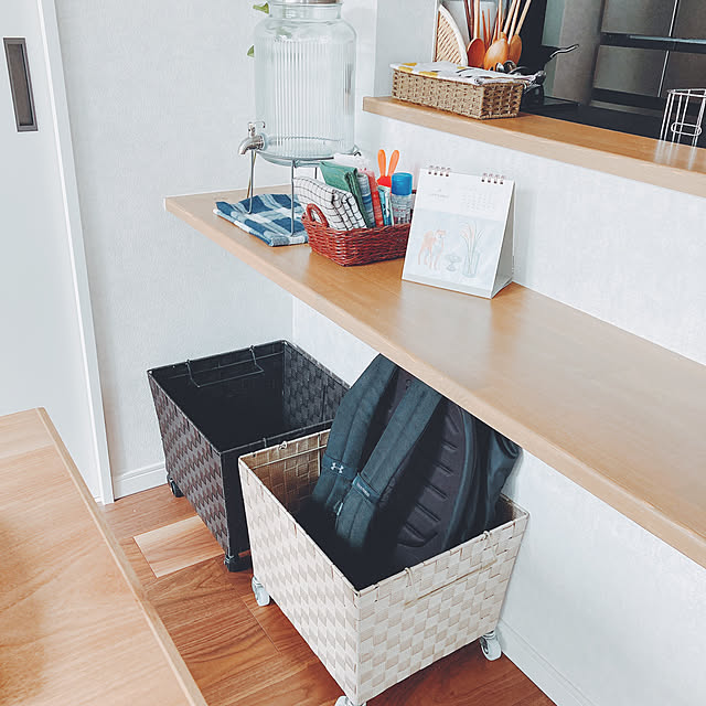帰宅後かばんの置き場所の悩みは、リビングにカゴとボックスを置いて解決 - 北欧、暮らしの道具店。