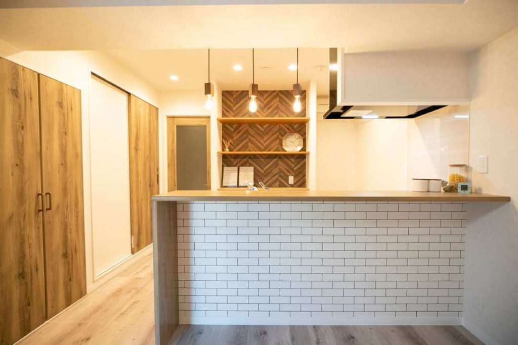タイルを使ったおしゃれなカウンターキッチン - LAKESIDE HOME 滋賀。