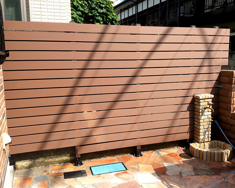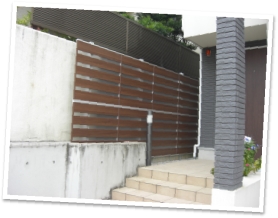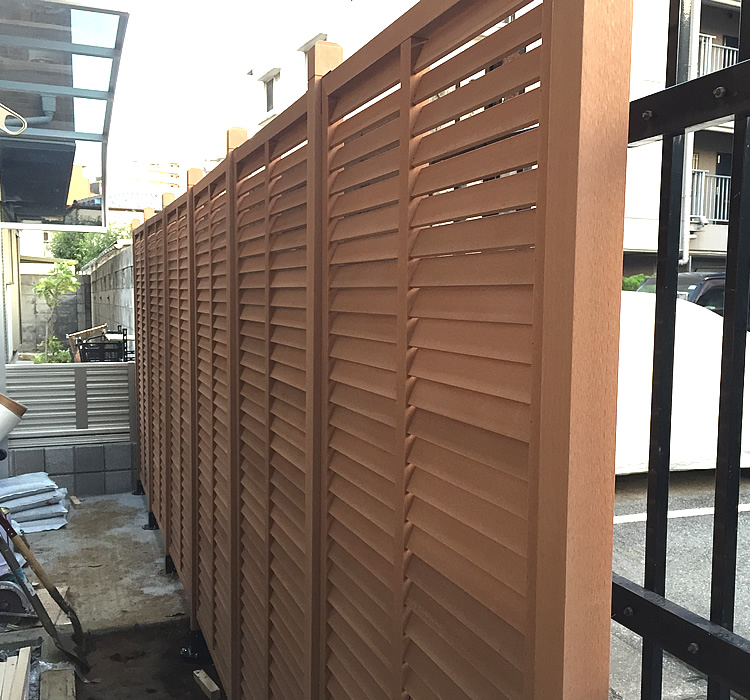 No.189既存ブロック塀を隠し、明るいムード造りのための人工木ルーバー設置目隠しフェンス・ウッドデッキ専門店のエコウッド。