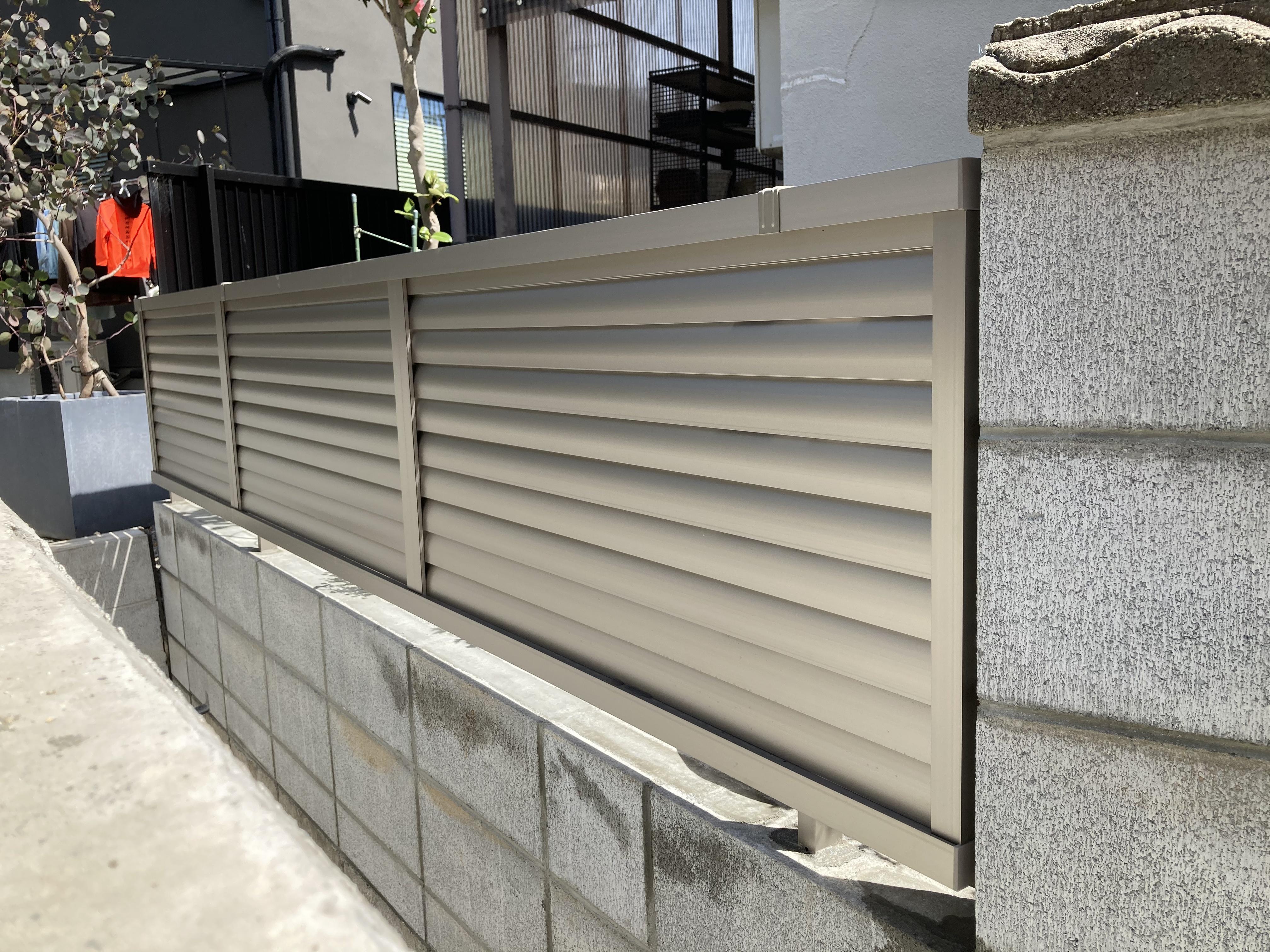 ブロック塀に目隠しフェンスを後付けして美観、安全性アップ横山鉄工所。