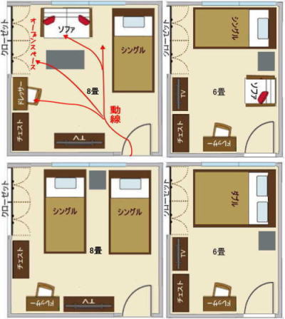 8畳寝室・癒しの空間づくりベッドサイズ別レイアウトのポイント現場のことから休日のことまで。北伸建設のスタッフブログです。