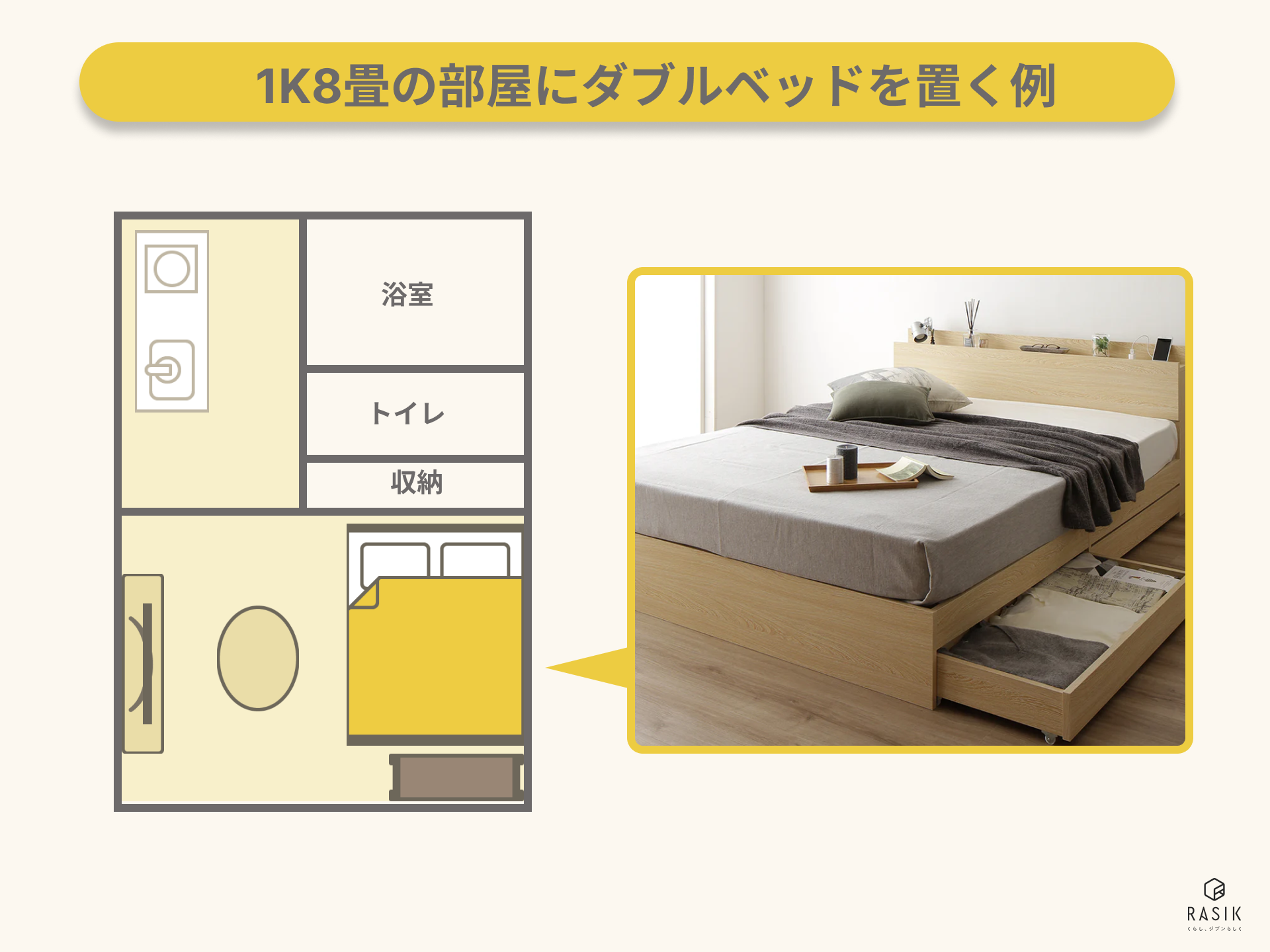 8畳や1Kにダブルベッドは置ける?4.5畳・6畳・8畳でレイアウトを比較ベッド・マットレス通販専門店 ネルコンシェルジュ neruco。