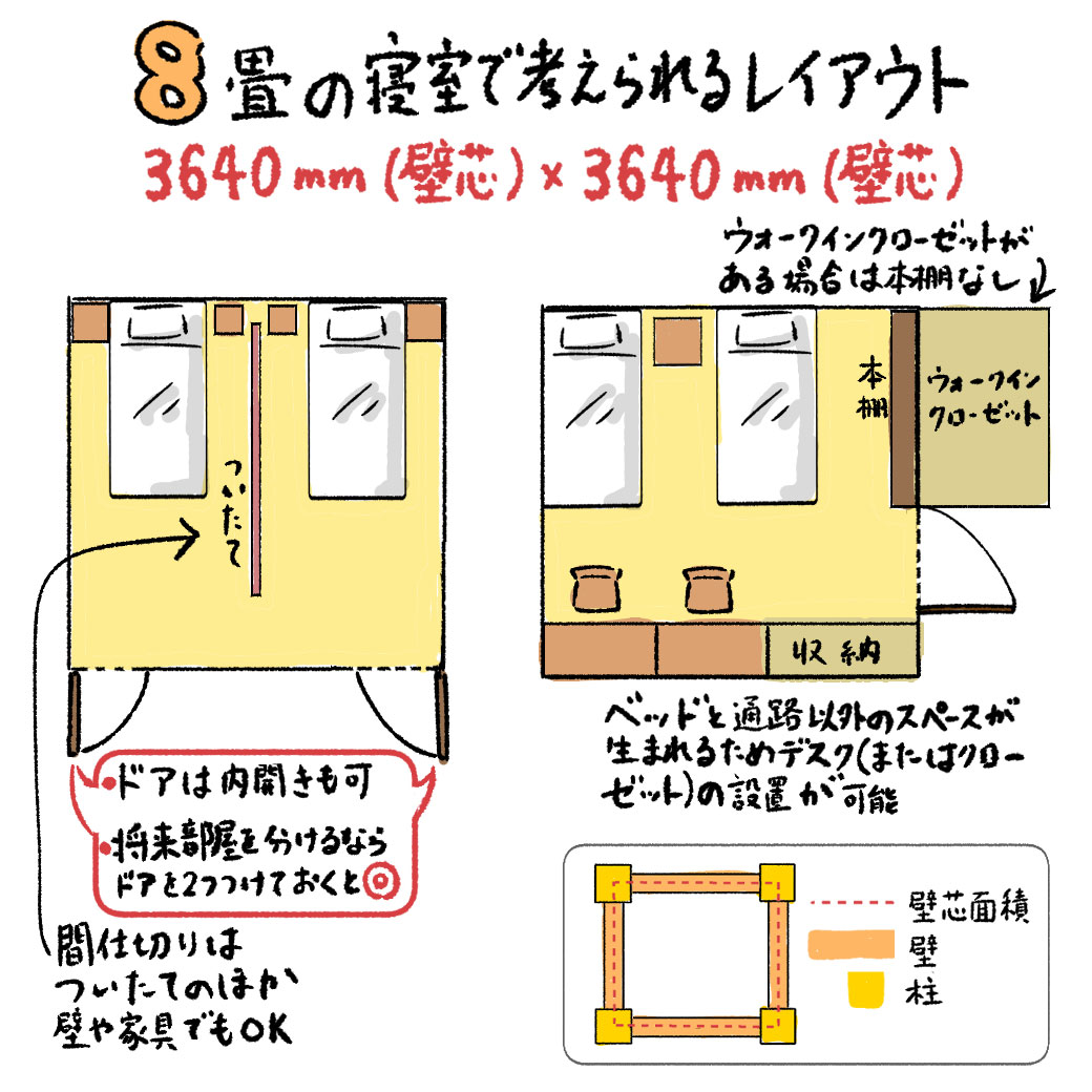 6帖〜8帖の寝室で考える、ベッドのサイズと配置 レイアウト家づくりのチェックポイント家づくりの基本Replan リプラン WebMagazine。