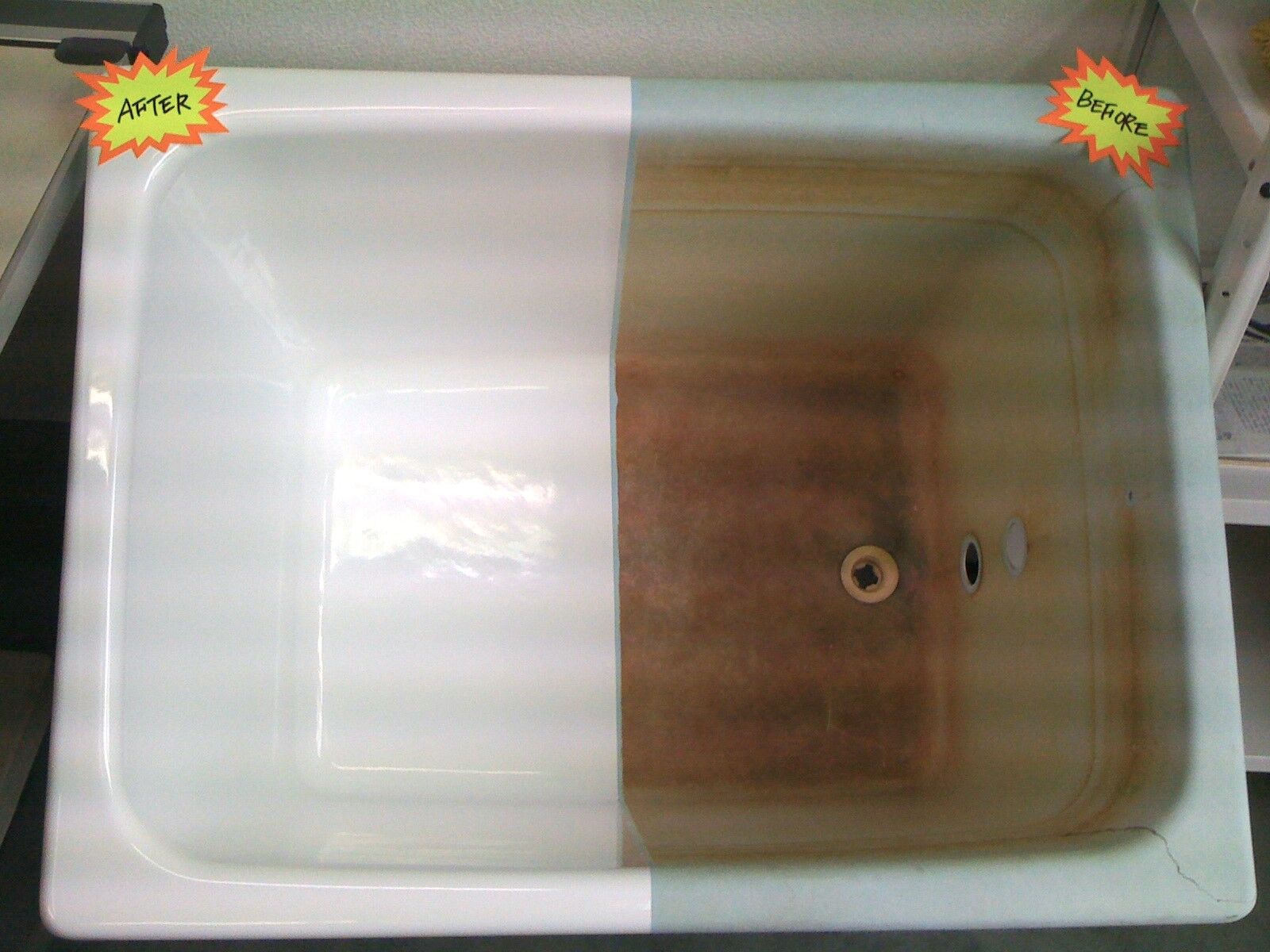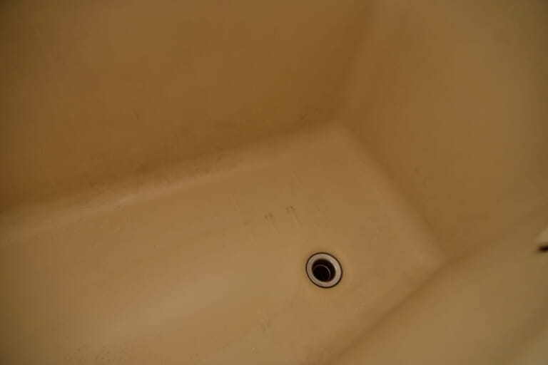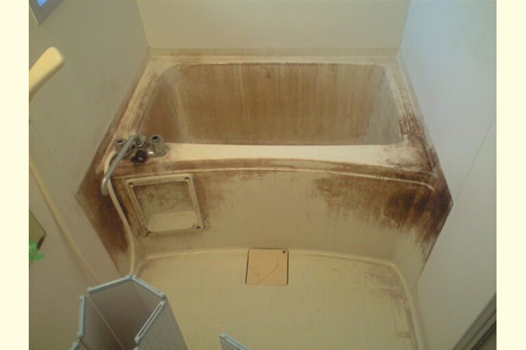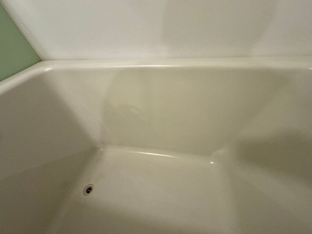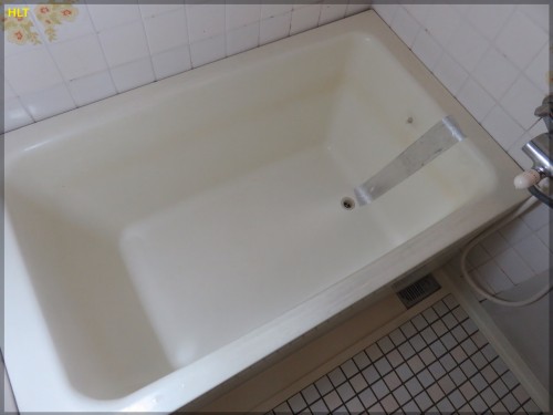 経年劣化で変色した浴槽を樹脂塗装で再生 下関市お風呂のリフォーム リメイク はネオ技建。ヒビ割れ、サビ、カビ、水アカ等。修理はお任せ下さい。