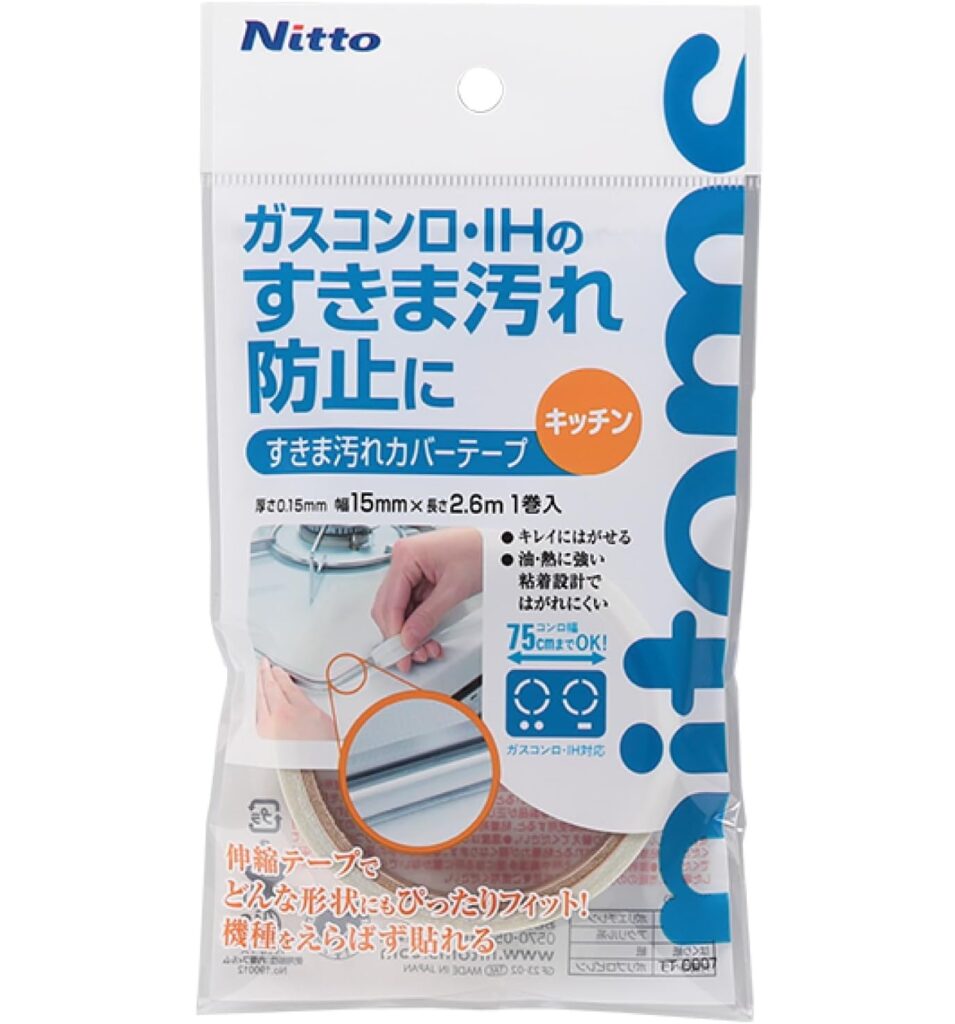 透明だから目立たない!コンロ形状を選ばず、キレイに貼れる! 透明テープで、コンロ周りのすきまをカバーし、汚れを防ぐ汚れる前のひと工夫で、効率よくきれいをキープ株式会社ニトムズのプレスリリース。