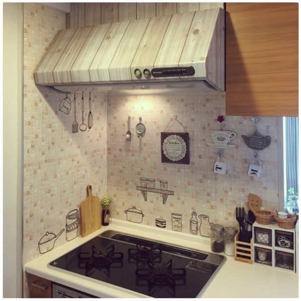 セリアの壁用キッチン汚れ防止シートでコンロ周りをイメチェン♪とりどり。