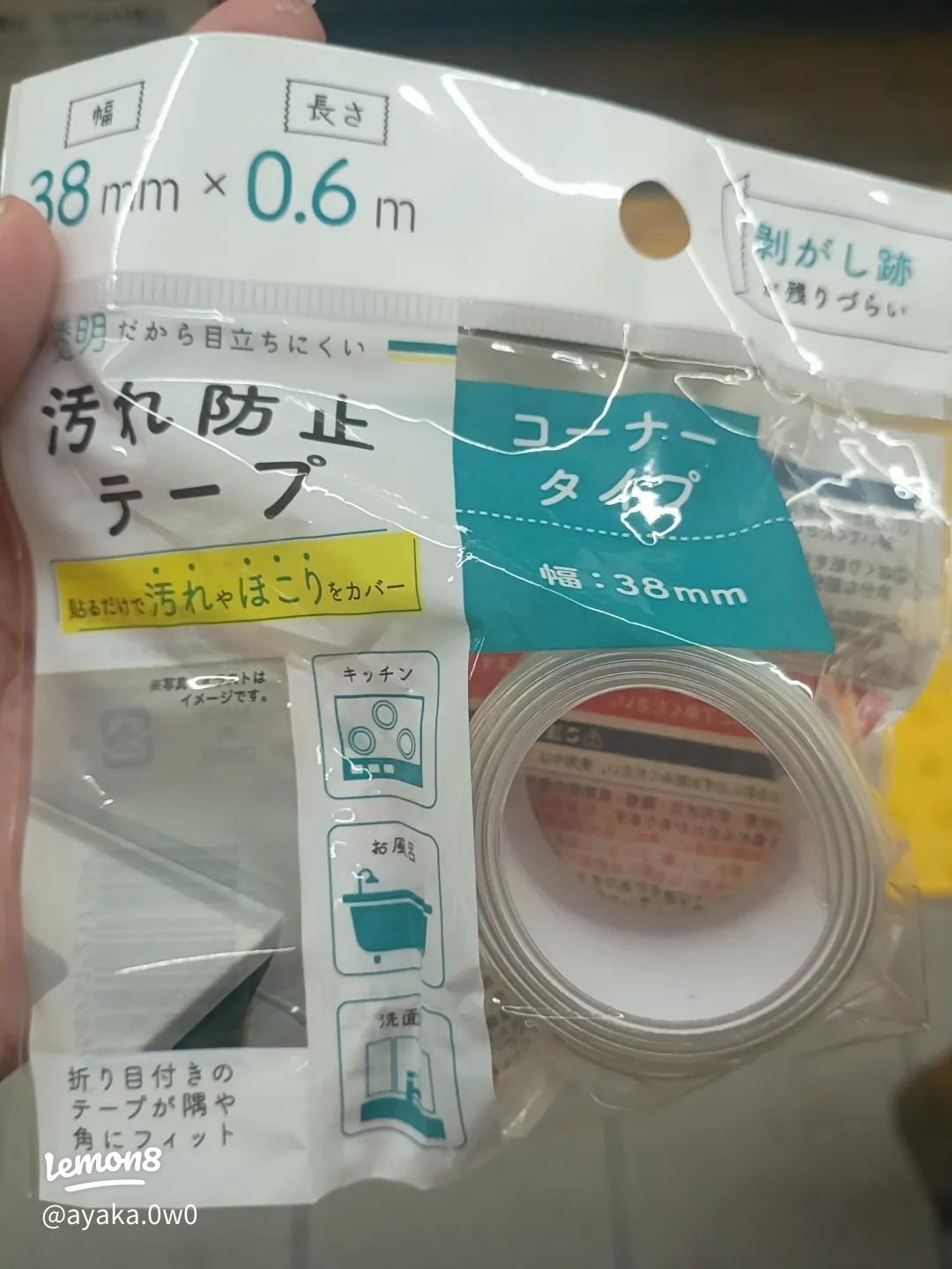 汚れ防止テープのレポ セリアで見つけた汚れ防止テープ✓厚みがあって貼りやすい ✓水弾く ✓粘着が強く剥がれない ✓剥がすの力要る 粘着強くて✓反射する 水滴も目立つ✓コスパ良くない コスパ良くするために 貼り替え時期伸ばしてきます 希望は 半年。