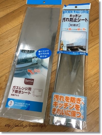セリアのキッチン汚れ防止シートとガスレンジ下敷きシート!branch-style~DIY・木工・アイアン・リフォームなどのハンドメイド。
