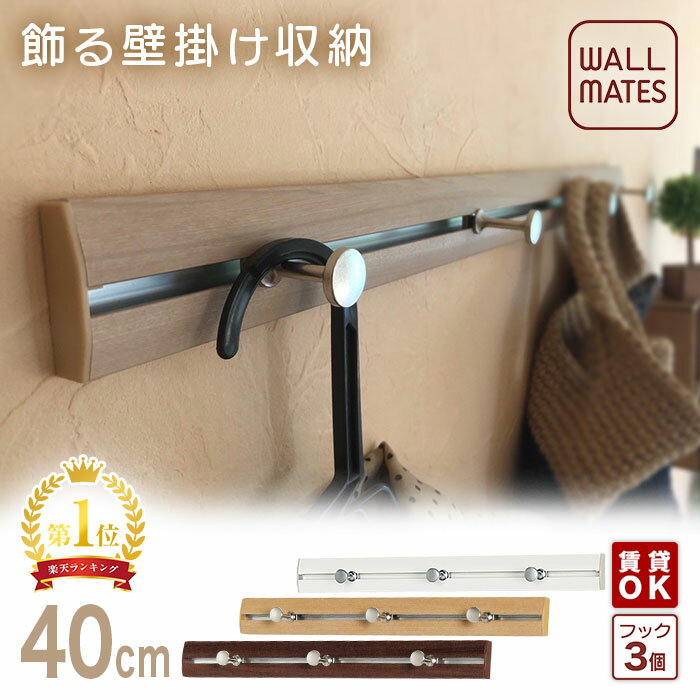 ウォールメイツ正規品 スリムレールフック 40cm 3色 賃貸 の 壁付け 収納 に 壁掛け ハンガーラック 石膏ボード 壁 に ピン 取り付け安全荷重:ピン5kg ネジ10kg 日本製 玄関 洗面所 キッチン カウンター横 に ウォールフック おしゃれ な コートハンガー - 通販家具。