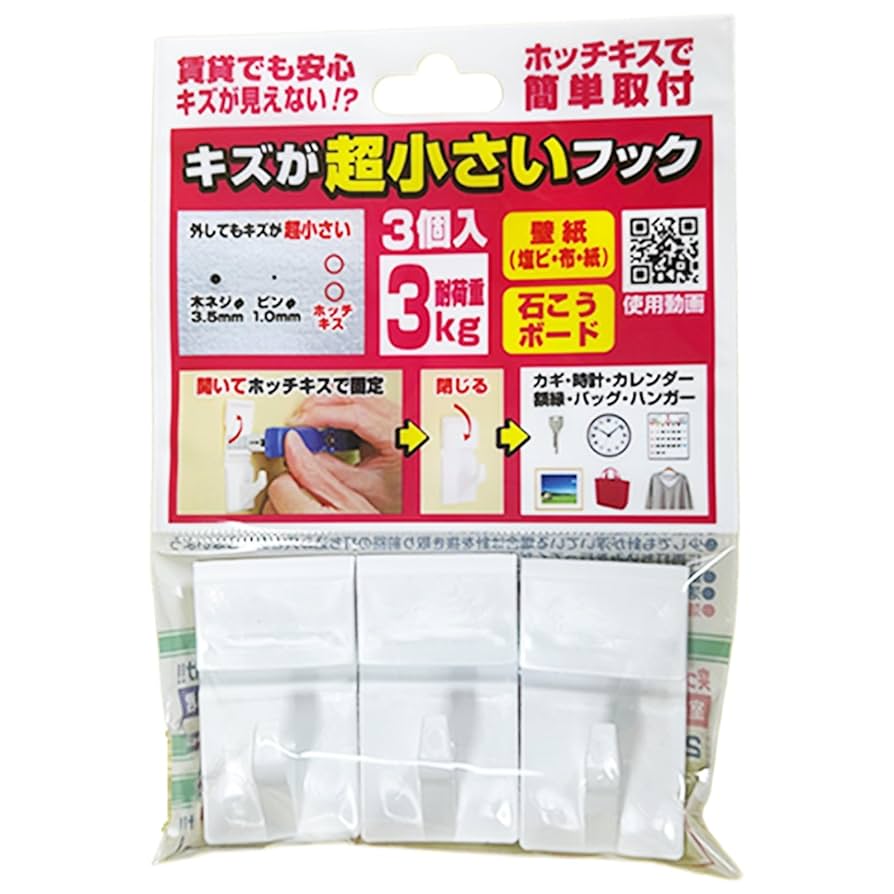 フック 壁 傷つけない 耐荷重5kg3個入り ?石膏ボード 壁紙 賃貸?ホチキスで取付 簡単 固定 跡が残らない 壁掛けフック 特許 ホワイト :monomotto - 通販 - Yahoo!ショッピング。