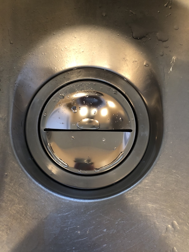キッチンの排水口カバーは、シンプルで清潔なステンレス製がおすすめ - ちょっと曲がった家。