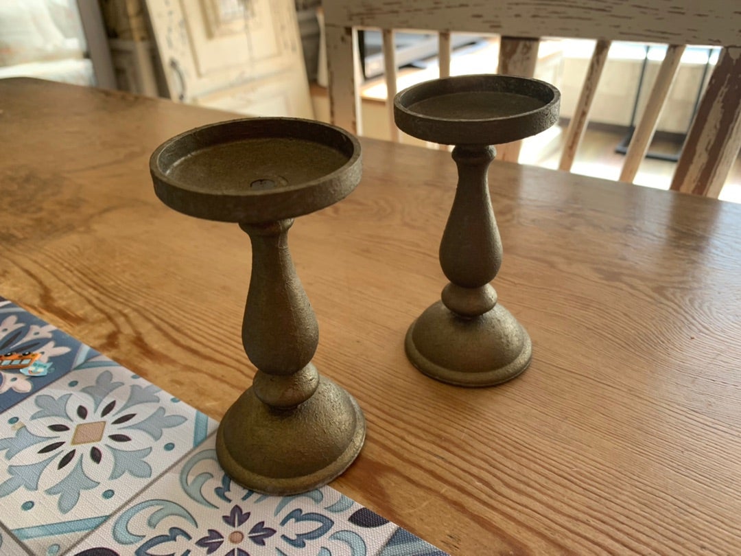 セリア キャンドルスタンドをアイアンペイントでアンティーク風にリメイクココロ*にうるおいがある暮らしづくり。