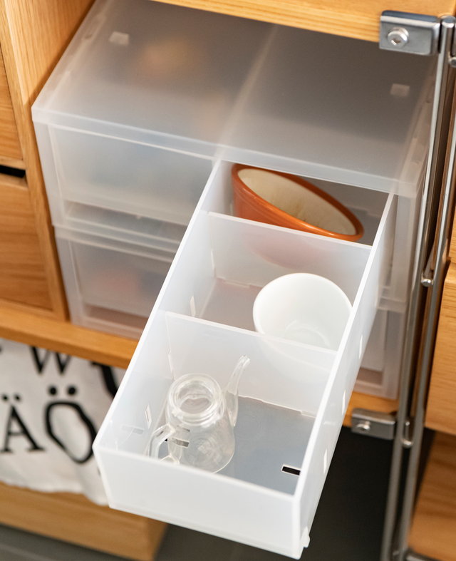 食器棚やデスクの整理におすすめ。無印良品「アクリル仕切り棚」の収納アイデアをご紹介SPOON HOME。