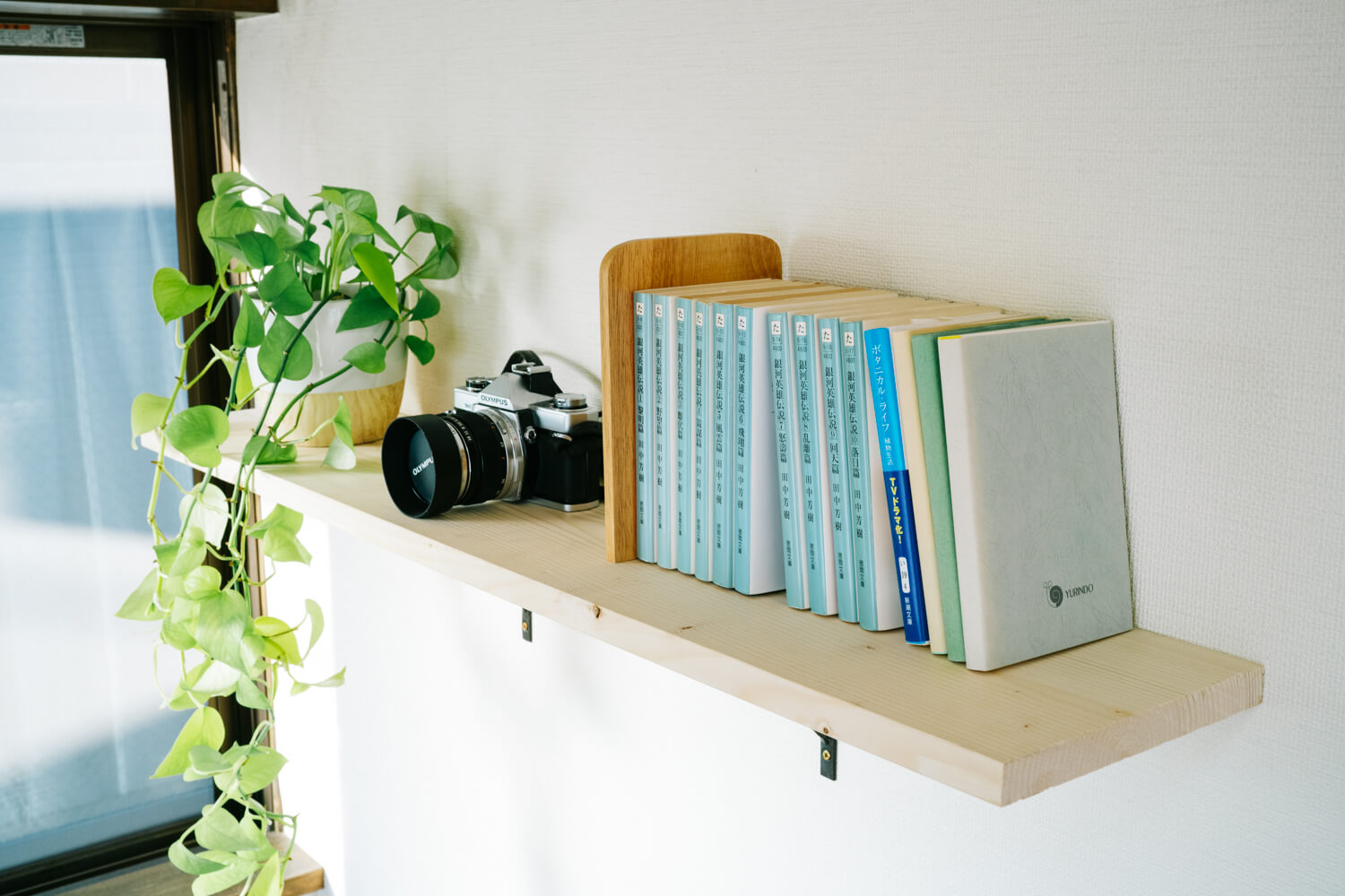 壁に穴開けなしで棚を設置!?ウォールシェルフで収納力アップ。