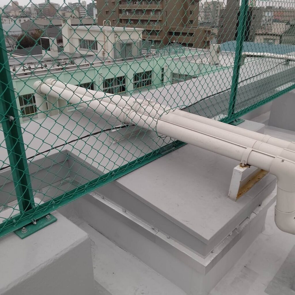 校舎の屋上に設置したネットフェンス勇商クリエイト有限会社。