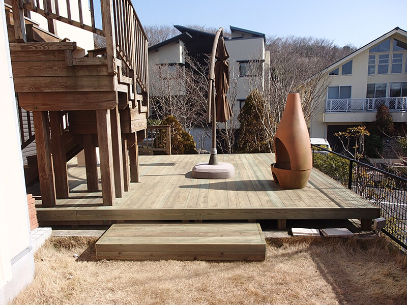 屋上にウッドデッキ・パーゴラ・フェンスをつくるウッドデッキのDIYリーベ。