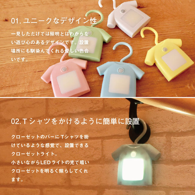 人感センサー付きクローゼットライト T-shirt ティーシャツ EF-RL01アンファンス株式会社生活雑貨・生活家電・インテリア製品の企画、製造、販売。