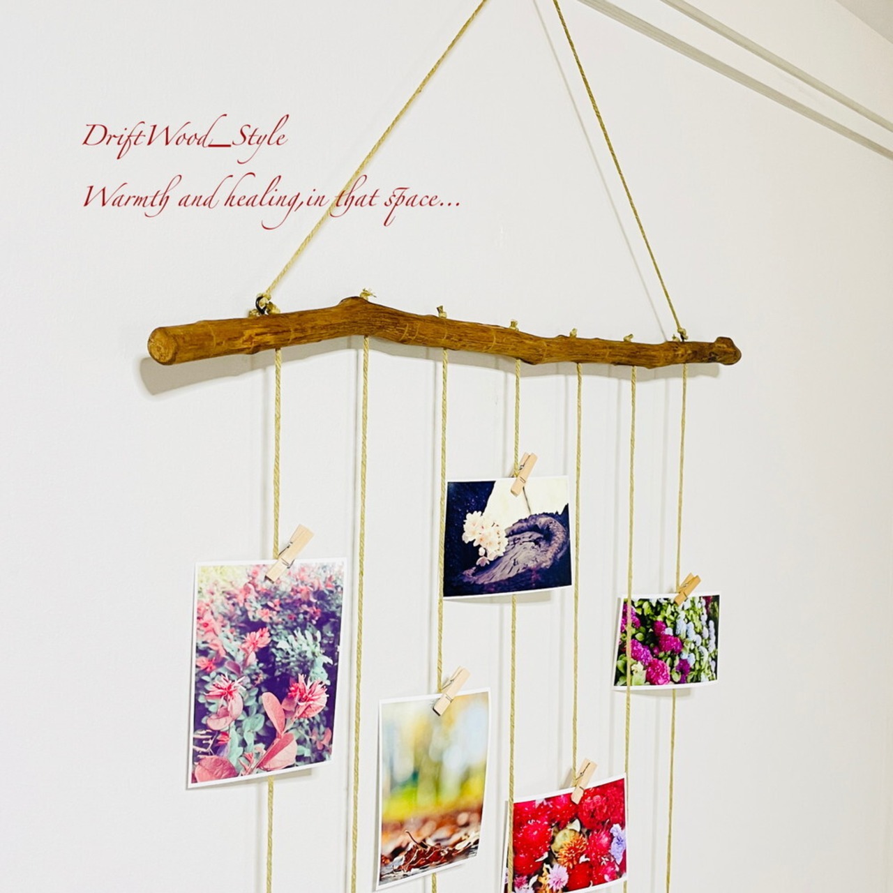 流木インテリア 壁一面に写真を飾れる大サイズのフォトディスプレイ 流木 写真ハンガー ウォールデコ 壁掛け N5流木インテリア専門DriftWoodStyle。