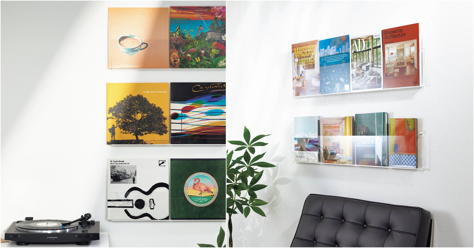 レコードや雑誌を壁に飾る『アクリル壁付けマガレコラック』をディノスが発売株式会社dinosのプレスリリース。