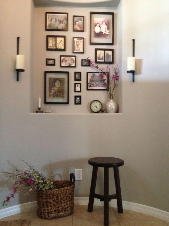 家族写真やアートを効果的に飾るユニークなフォトウォールのアイデア15。