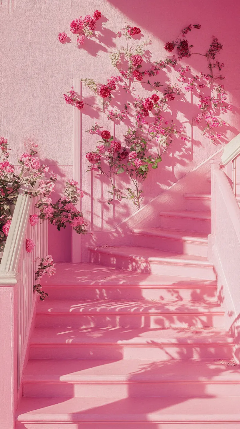 幻想的なピンクの光で彩られたフォトジェニックな「渋谷サクラステージ」の階段。美しいアート空間を歩くだけで、まるで別世界にいるような感覚を味わうことができます🌸The staircase at Shibuya Sakura Stage bathed in enchanting pink lightoffers a photogenic。
