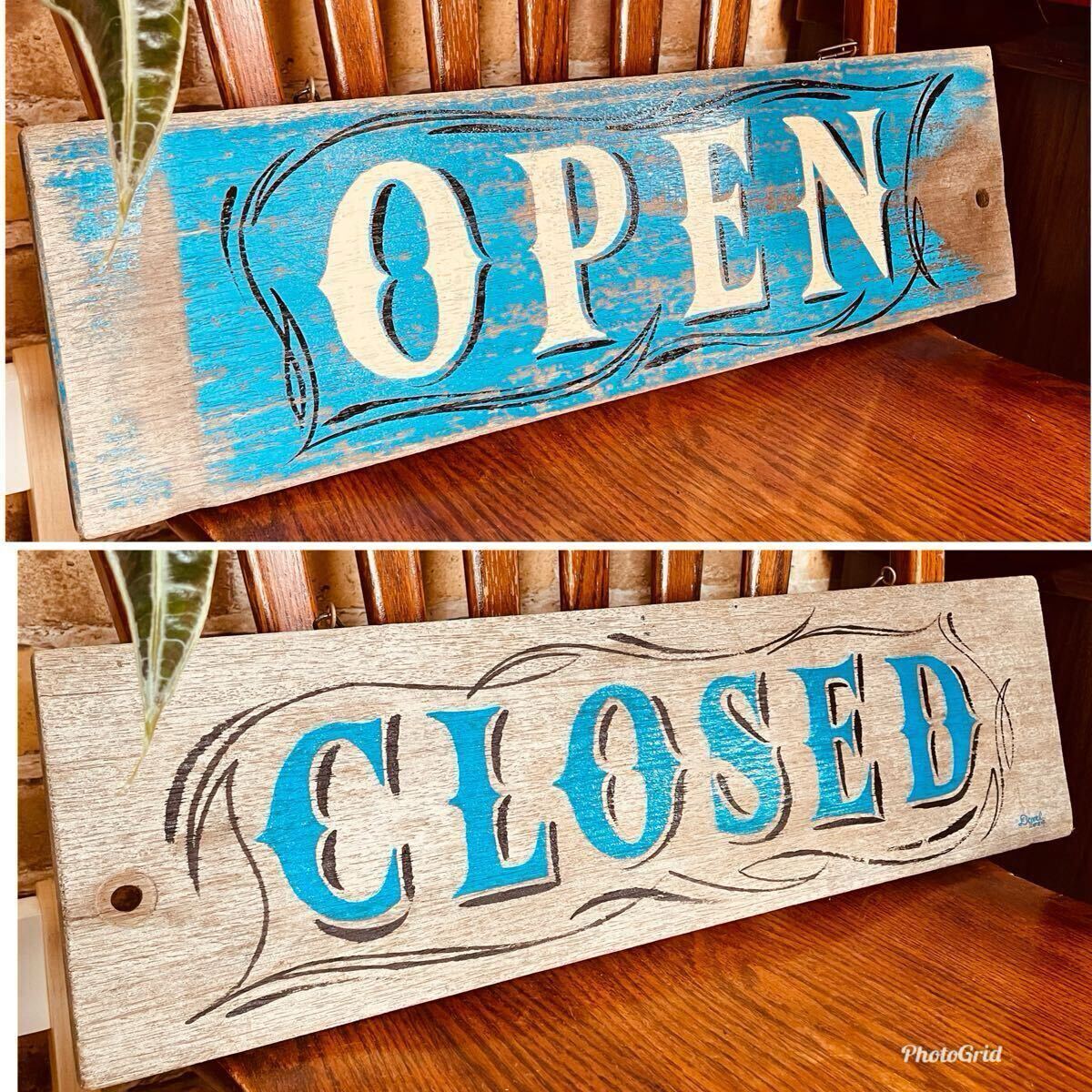 一点物 木製 看板 手描き オープン クローズ OPEN CLOSE ビンテージ 古材 店舗 カフェ お洒落 キッチン。