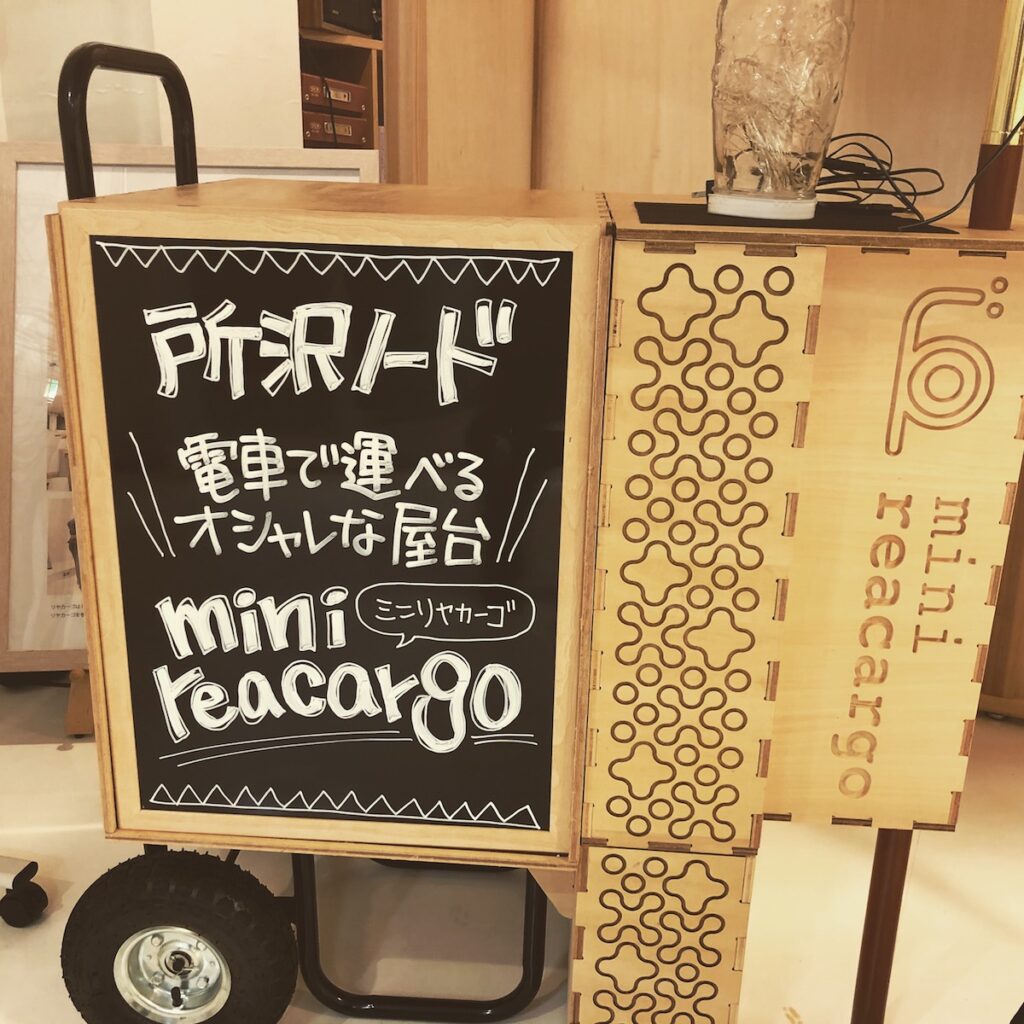 出張で黒板書き♩ 電車で持ち運べる屋台「ミニリヤカーゴ」のブラックボード♪みさきのPOP。