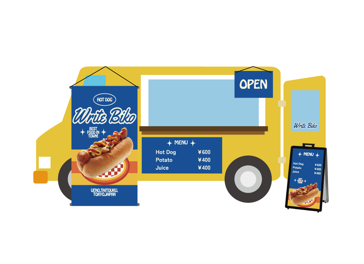 キッチンカーで使う看板、どうやって書くの?見やすさと個性を兼ね備えた看板作りのコツを伝授! - ケータバンク株式会社 - キッチンカーの総合商社。