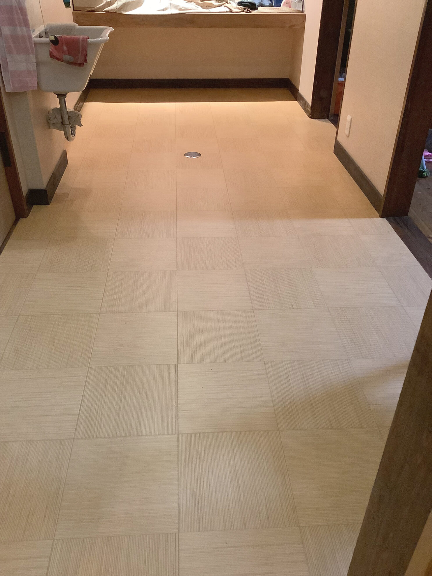 洗面所床クッションフロア貼り向日市で水回りのリフォームなら向日市で水回りのリフォームを承る 住まうとサポート。