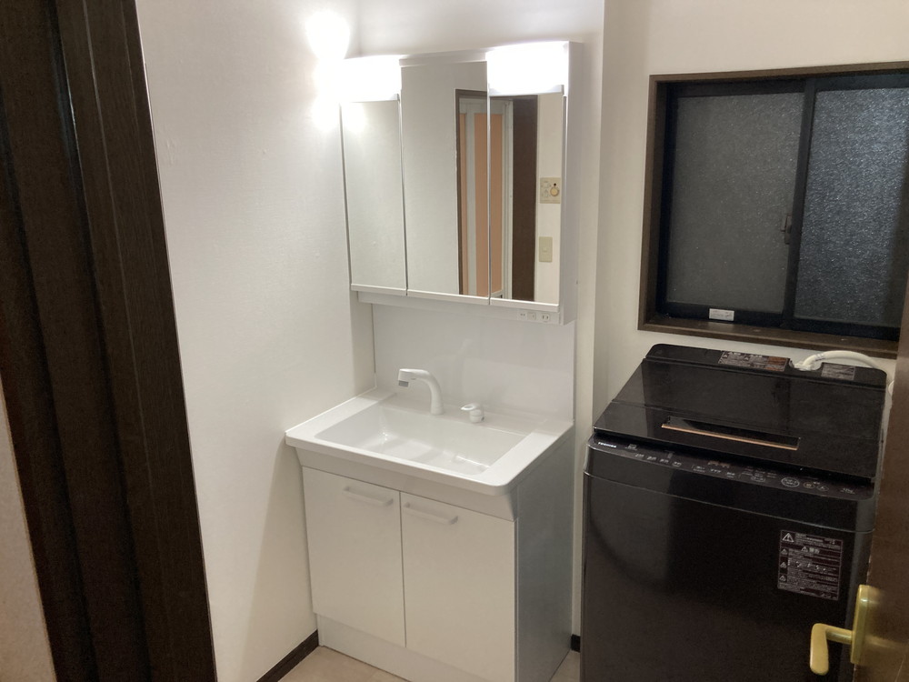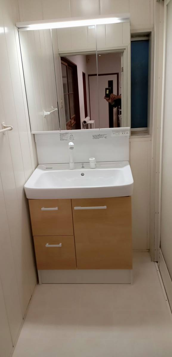 洗面所のクッションフロア張替工事洗面台リフォーム交換できるくん。